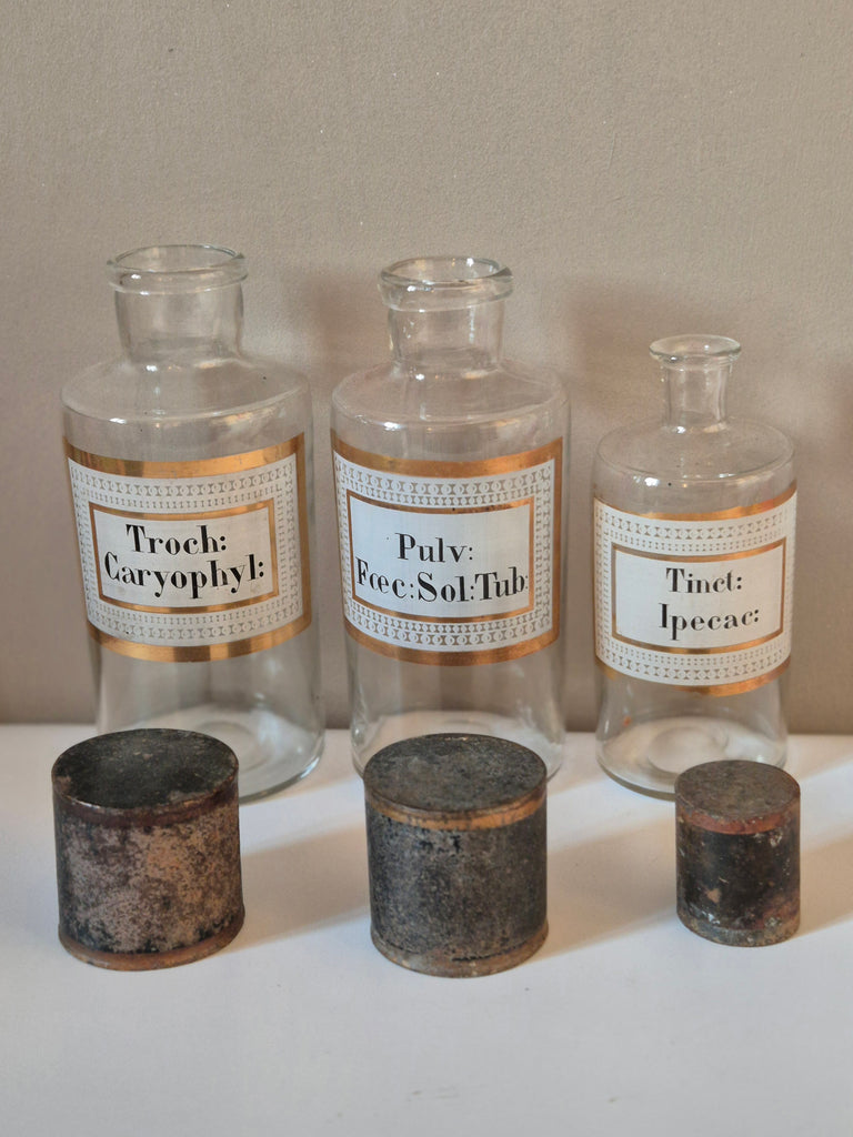 Ensemble de 3 beaux flacons à pharmacie en verre début 20ème