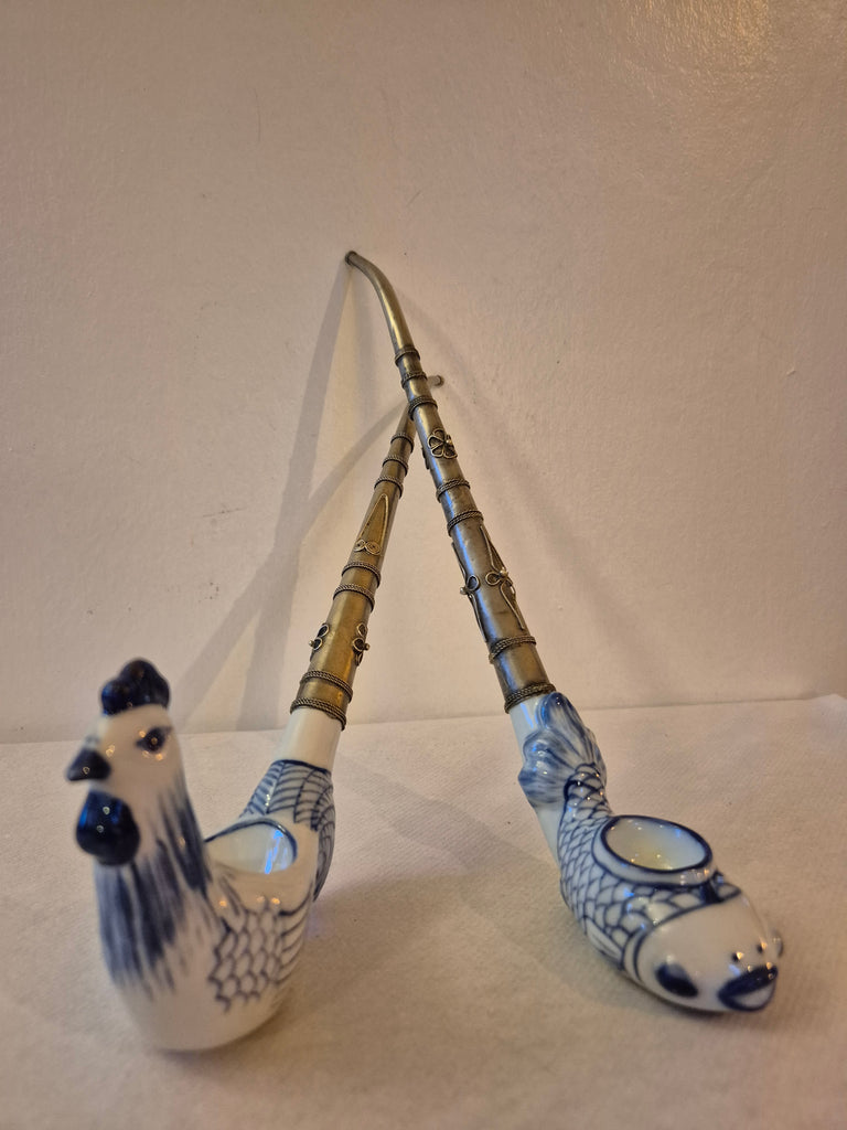 2 pipes chinoises anciennes en métal et céramique